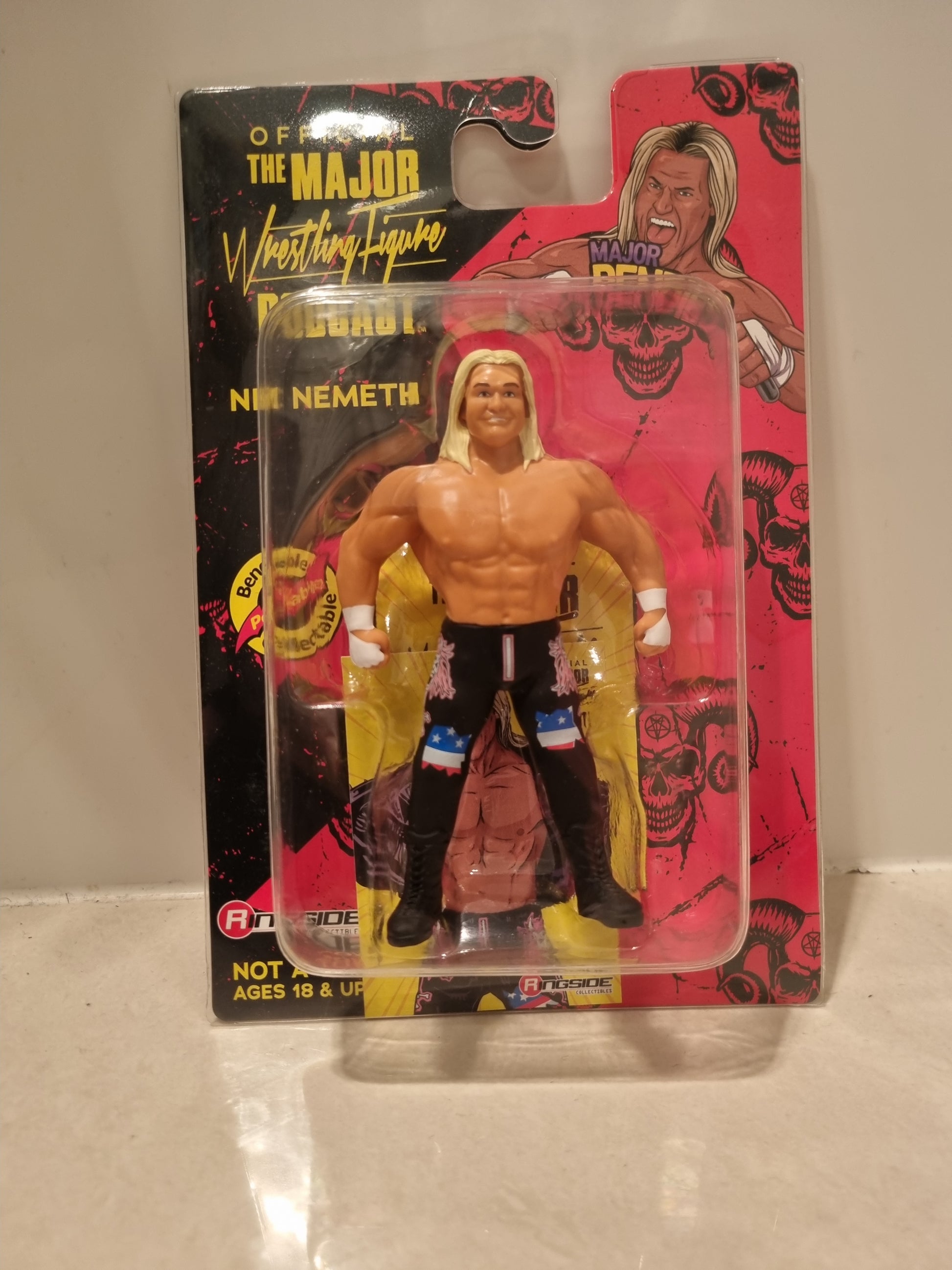 Celebrate the debut of Nic Nemeth (formerly known as Dolph Ziggler) in the Major Bendies line with this Ringside Collectibles Exclusive figure. Featuring black tights and the signature Major Bendies style.